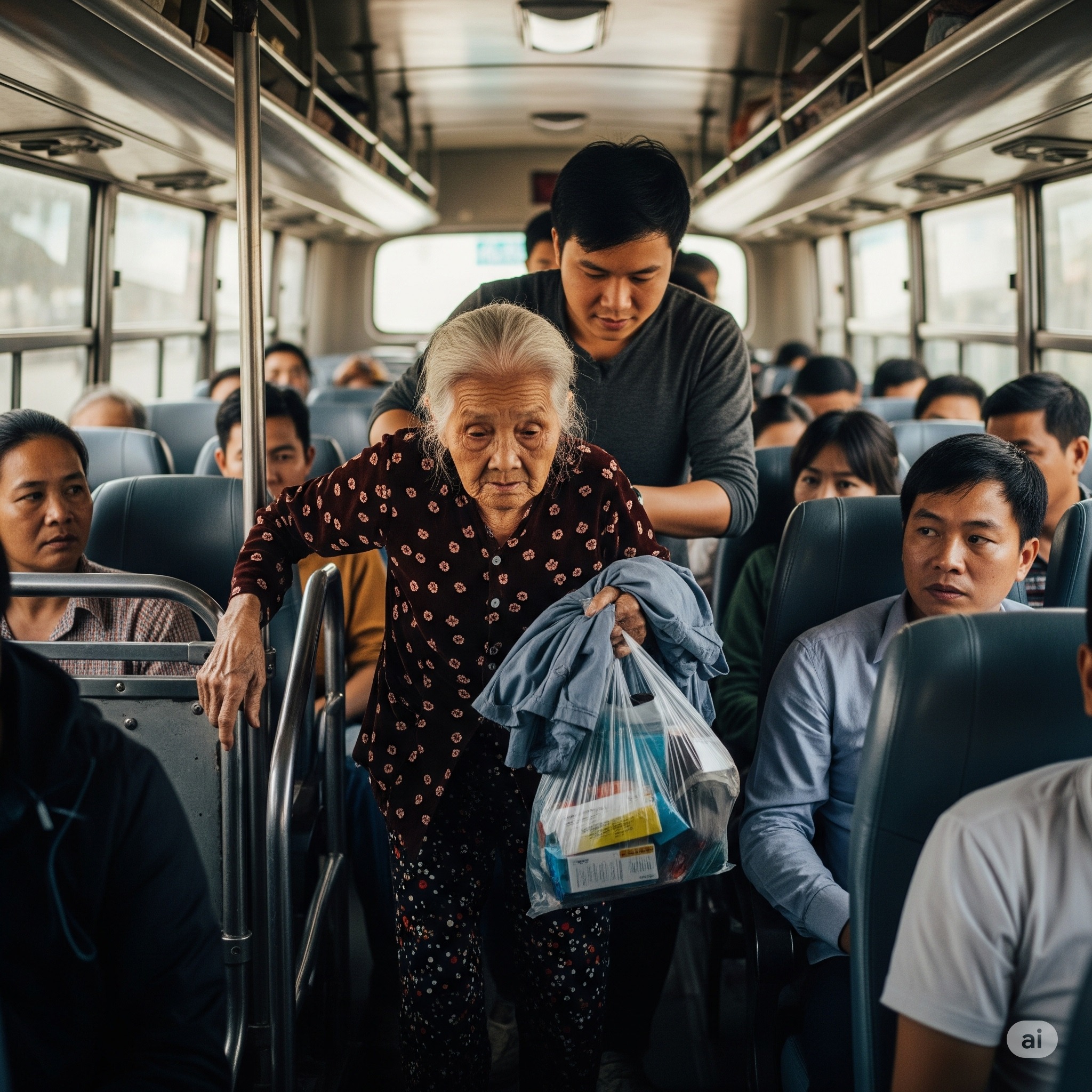 Nói rồi bế thốc bà ra bến xe, dúi lên một chuyến khách giường nằm về miền quê xa tít tận Nghệ An.Không thuốc, không người chăm.